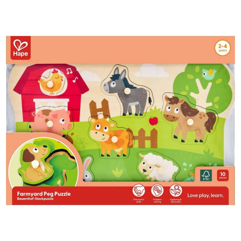 Lös pusslet genom att matcha formerna eller bilderna med rätt hål och uppmuntra ditt barn att säga djurens namn medan de leker.