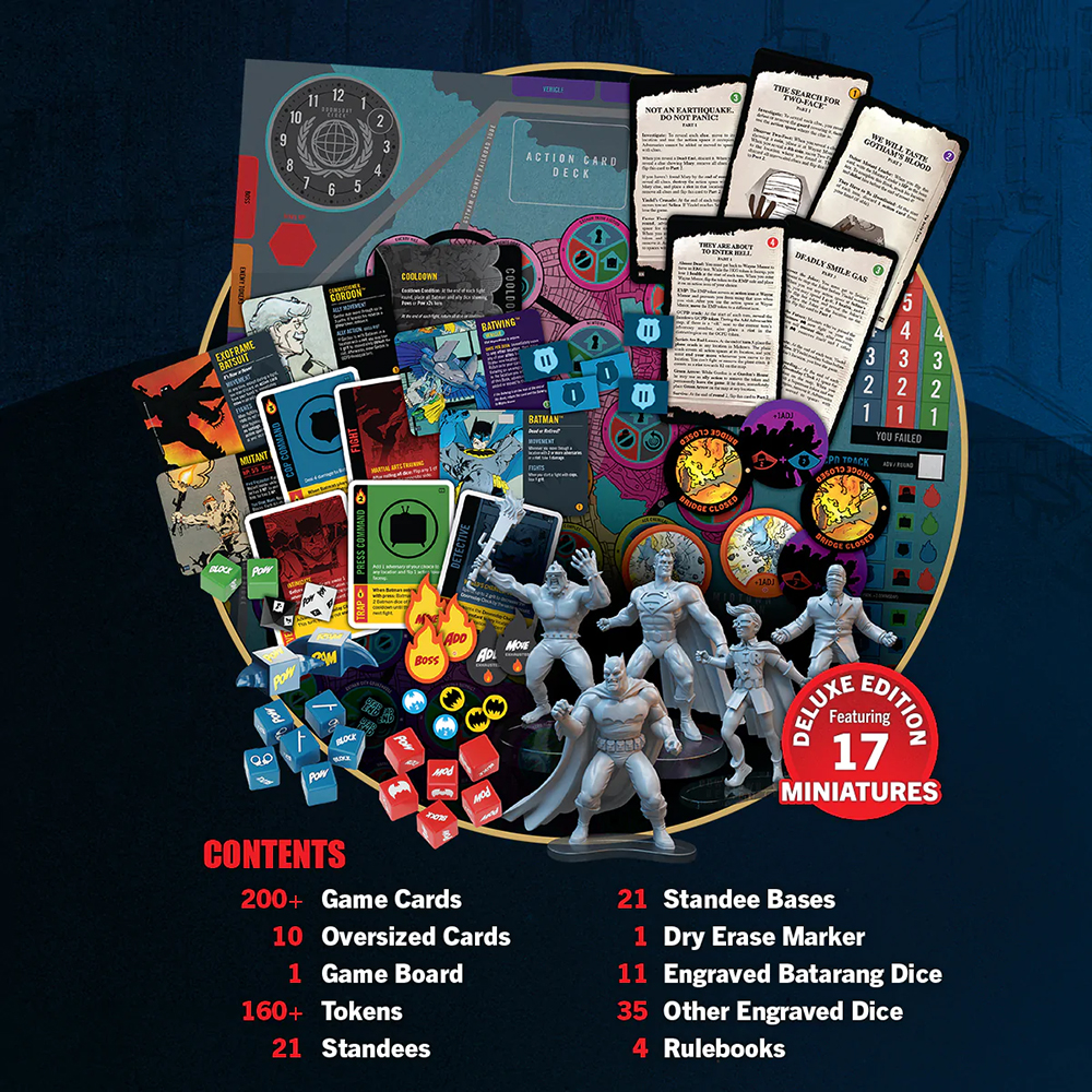 Gör allt du kan för att slå tillbaka en obeveklig våg av hänsynslösa mutanter, poliser och reportrar som försöker få dig på fall. Istället för traditionell level upp är detta ett spel av utmattning. En gammal Batman försöker överleva ett sista gatlopp mot gamla och nya skurkar – som Two Face, Billy Berserk och The Joker – och till och med hans mäktigaste allierade, självaste Stålmannen.Skada på kartongens ena hörn.