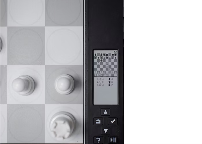 Det vackert designade schackbrädet har beröringssensorer som enkelt registrerar dina drag.