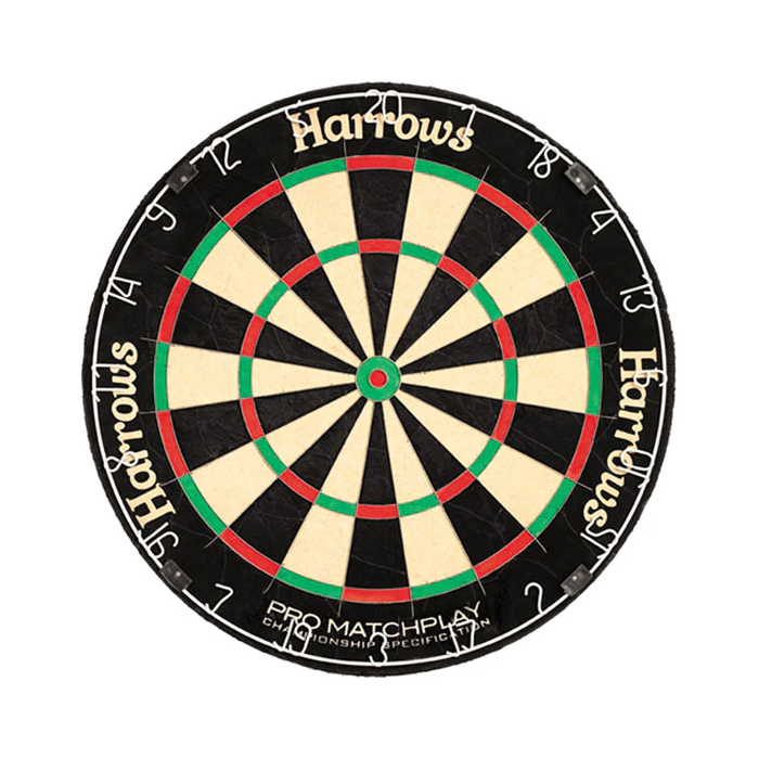 Harrows Pro Matchplay Bristle Dartboard är testad under turneringssammanhang och extrema matchspelssituationer där den har bevisats att vara ”Pro Choice”. Tillverkad enligt internationella matchspelsspecifikationer, har denna högdensitets, mälfria sisalfibertavlan, knife wire och matt sifferring som är det ultimata konceptet för icke-studsar.