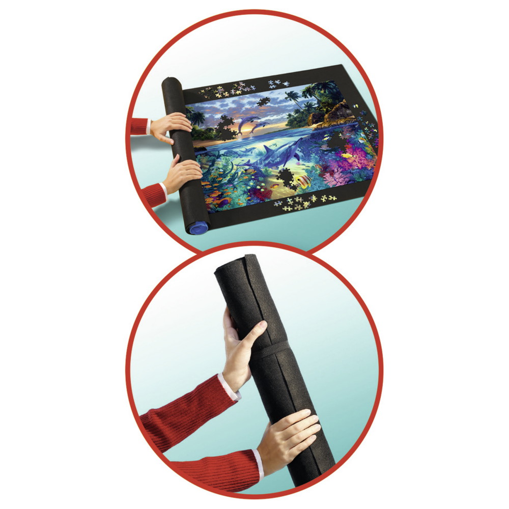 Med det här praktiska förvaringssystemet kan du transportera och förvara dina oavslutade och färdiga pussel på ett säkert och kompakt sätt. Det unika plaströret ger extra stabilitet och är lätt att rulla ihop.