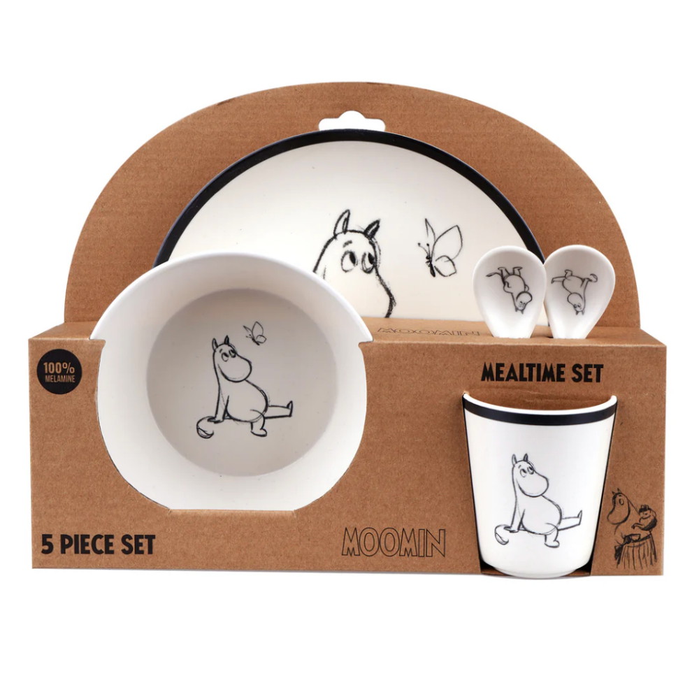 Mumintallrik, skål, mugg och 2 skedar för spädbarn och småbarn