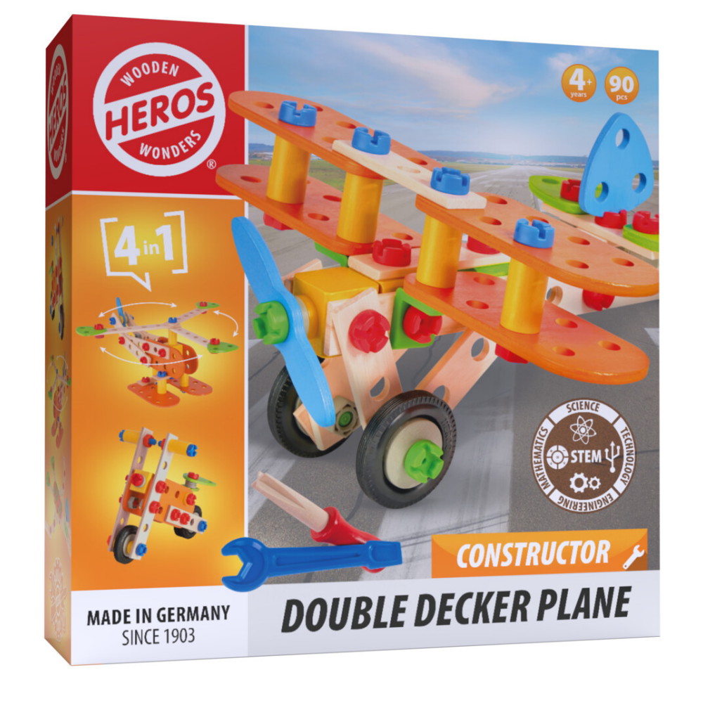 Wooden Wonders - Constructor Double Decker Plane 90 delar