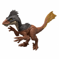 Skanna spårningskoden på dinosauriens fot i den kostnadsfria appen Jurassic World Play med en kompatibel smart enhet (Android eller iOS, medföljer inte) för att få en digital version av dinosaurien, så du kan leka roliga lekar där du tävlar med olika fordon på land, i luften och till havs.
