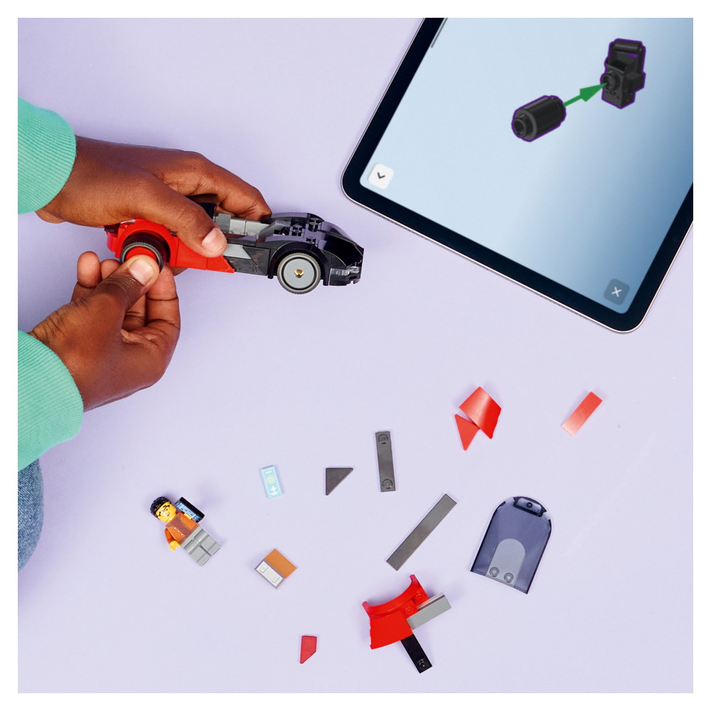 Barn kan bygga denna elbil med självförtroende med hjälp av appen LEGO Builder, där de kan zooma in, rotera i 3D och följa sina framsteg med enkla digitala instruktioner. Setet innehåller 109 delar.