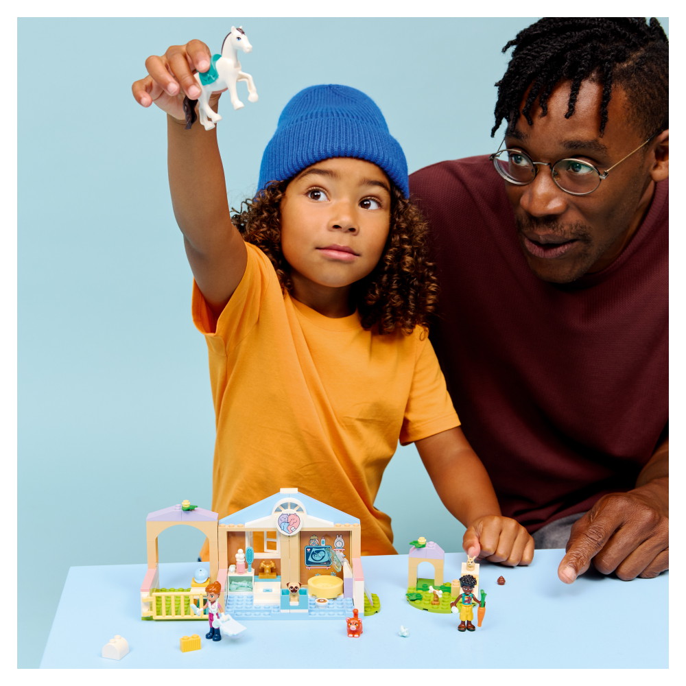 Leksetet innehåller minidockorna Leo och Valeria plus en häst, en hund, en kanin och 2 kattfigurer. Tillbehör med veterinärtema, som en spruta, en termometer, en skrivplatta och en penna, inspirerar till fantasilekar. Till hästen finns det dessutom en sadel, hö, en borste, en morot, vatten, hästbajs och en hjälm till ryttaren.