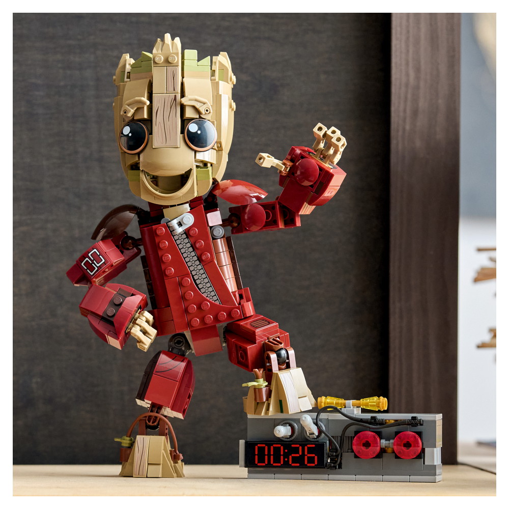 Detta LEGO | Marvel samlarset innehåller Groot i Ravager-kläderna som han bär i Marvel Studios film Guardians of the Galaxy Vol. 2. Den byggbara figuren har en detonator med 2 knappar och 2 rörliga spakar, från en ikonisk scen i filmen. Karaktären är mycket rörlig, med helt ledade axlar, armar, fingrar, höfter, fötter och hals, plus justerbara ögonbryn för olika ansiktsuttryck. Detta LEGO | Marvel byggset är en fantastisk födelsedagspresent. Och med appen LEGO Builder kan barn bygga med självförtroende – zooma in, rotera i 3D och hålla reda på sina framsteg med enkla digitala instruktioner. Byggsetet innehåller 604 delar.