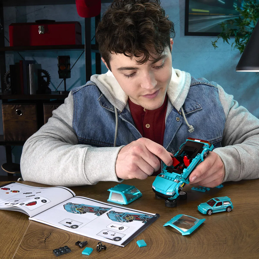 Återupplev den ikoniska tuning-eran med detta byggbara set från Mattel Brick Shop. Med 248 bitar skapar du en detaljerad och autentisk Custom ’90 Honda Civic EF, redo att stylas efter din egen vision.