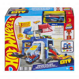 Hot Wheels City Downtown Police Tower lekset utökar leken med tre nivåer fyllda med barnfavoriter som ramper, växlare och realistiska bandetaljer.