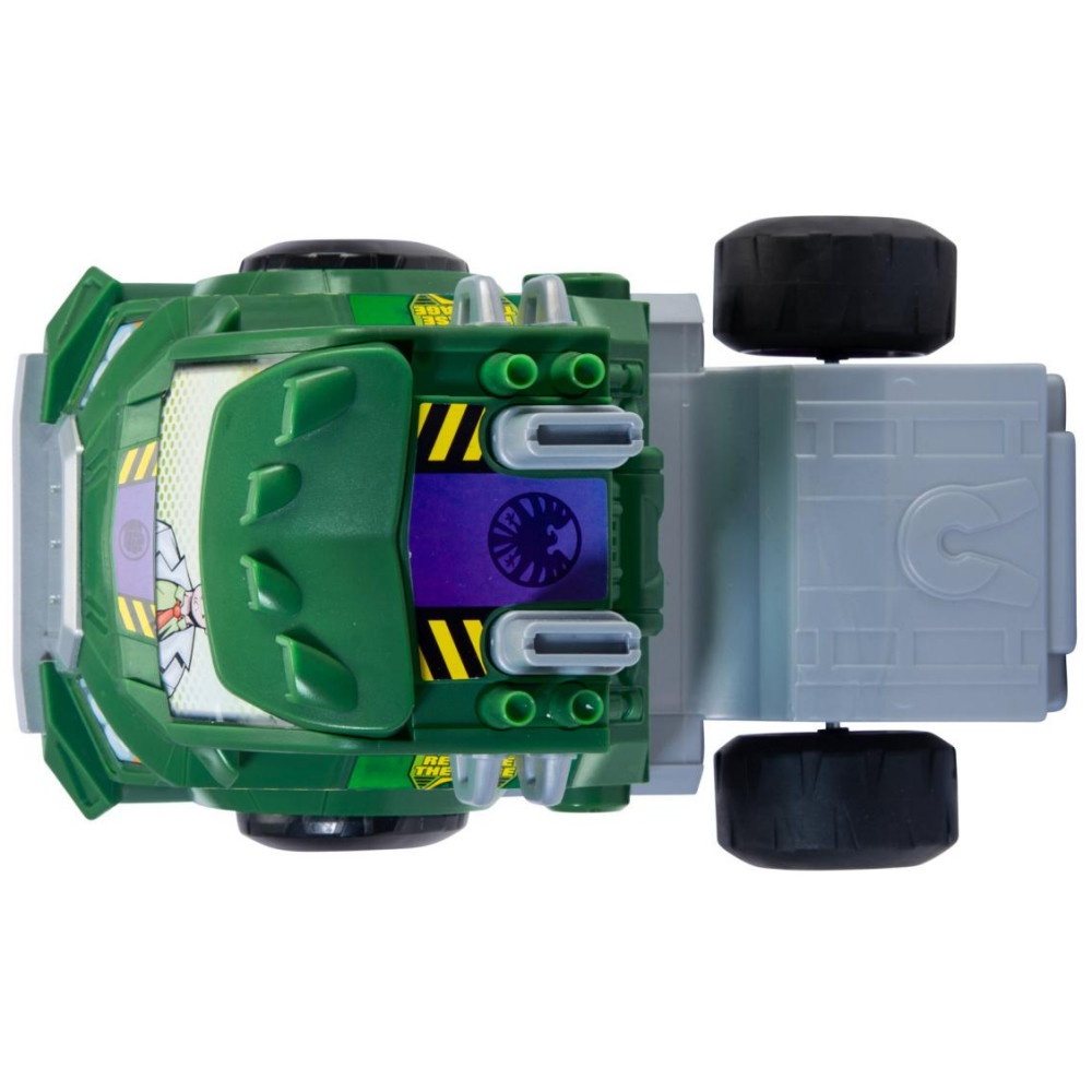 Oavsett om Hulken är dold eller gör ett imponerande framträdande – den radiostyrda bilen är alltid helt kontrollerbar. Den susar fram över marken i hastigheter upp till 6 km/h och styrs via den intuitiva fjärrkontrollen framåt, bakåt, vänster och höger. Typiska Hulken-ljud, som kan höras med en knapptryckning på handkontrollen.