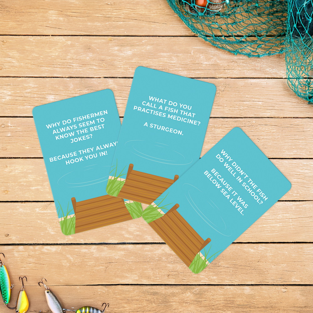 Få dig att skratta med den här snygga kortleken med fiskeskämt.