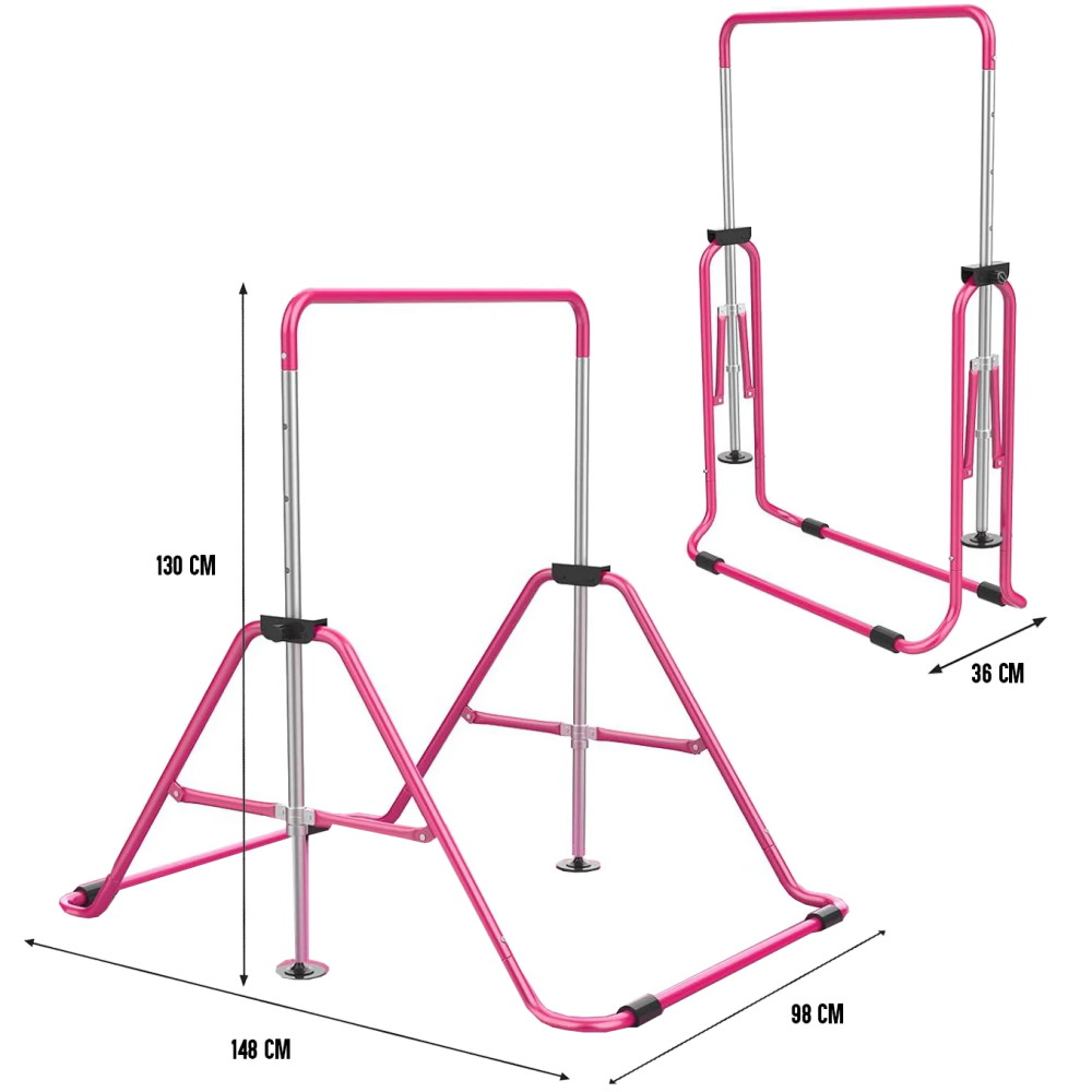 - JUSTERBAR HÖJD: Justerbar från 90 till 130 cm, denna stång stöder ditt barn i varje steg på vägen, perfekt för att börja gymnastik eller förbättra sina färdigheter hemma.