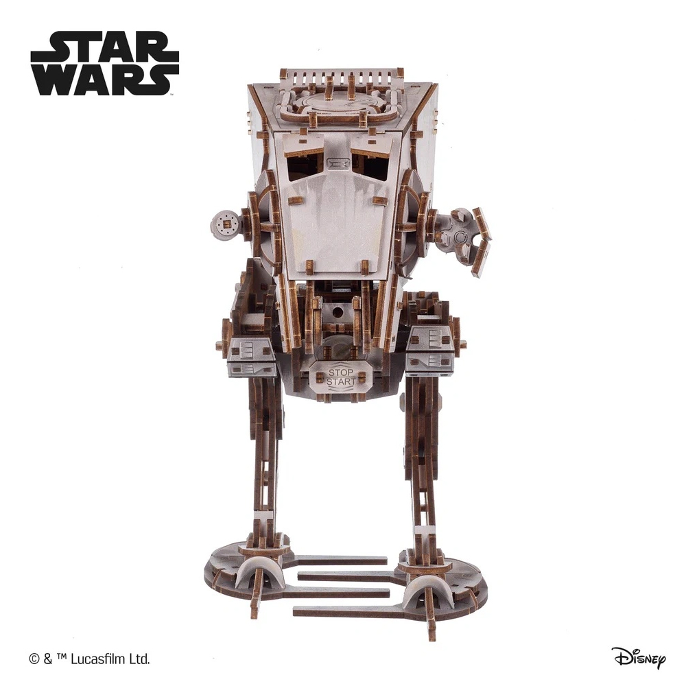 Den tvåbenta terränggående spaningstransporten – Star Wars AT-ST – från den licensierade Ugears-serien är ett fjäderdrivet tvåbent lätt patrullfordon från Galaktiska Imperiets skräckinjagande arsenal. Fans av Star Wars-sagan kommer att känna igen dessa infanterikrigsmaskiner från striderna på Hoth och Endor, som setts i The Empire Strikes Back (1980) och Return of the Jedi (1983). Se upp för Ewok-fällor och rammande stockar!