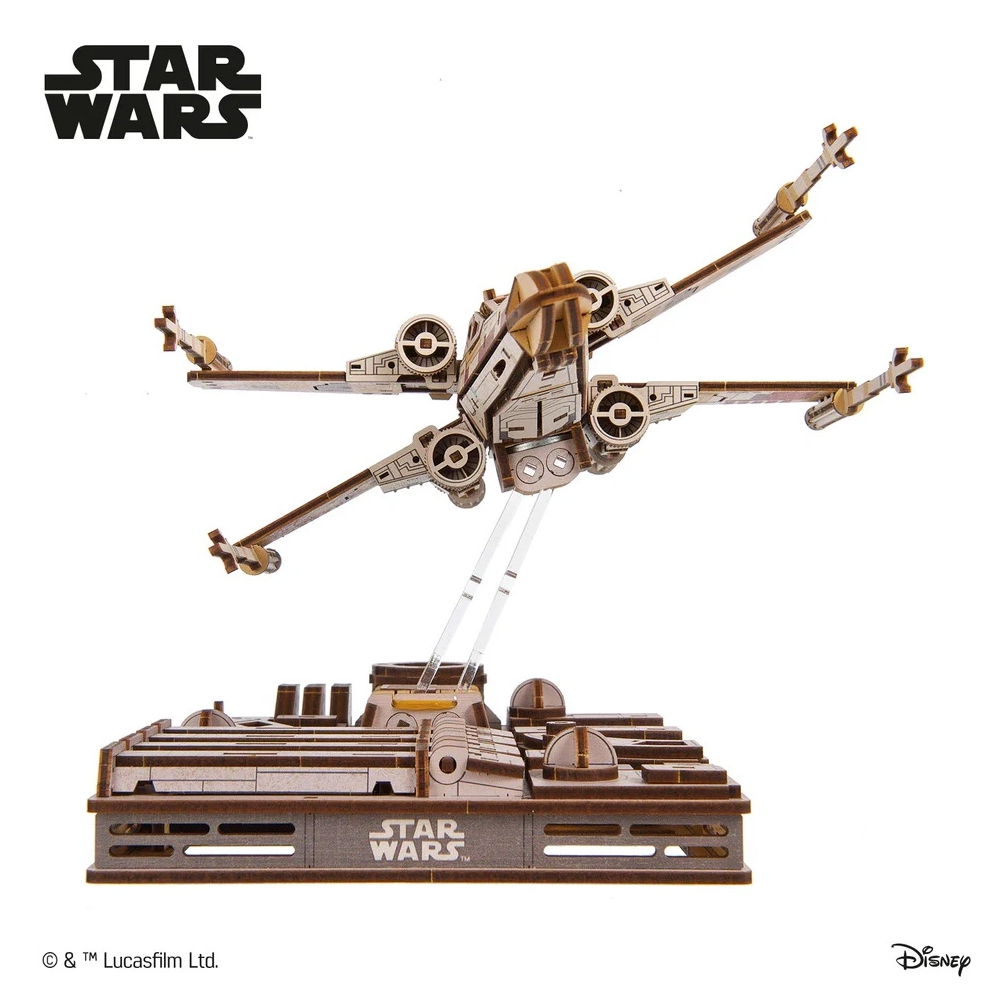 Känn dig som att bli en del av Rebellalliansen och delta i luftstriderna om Dödsstjärnan när du bygger Star Wars Luke Skywalkers X-Wing Starfighter rymdskepp från den licensierade Star Wars-kollektionen från Ugears. X-Wingen var den sista försvarslinjen mot det Galaktiska Imperiets planetdödande supervapen och har fått sitt namn från S-planens position i attackläge. Manövrera TIE-fightern och använd Kraften för att ta skottet som räddar Galaxen!