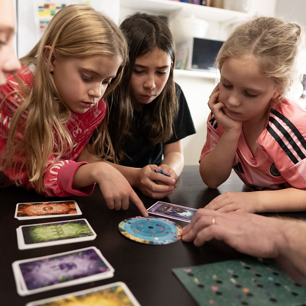 Tillsammans eller själva löser barnen olika gåtor för att sätta ihop kostymen. De sex olika typerna av visuella pussel, som visas på 36 illustrerade kort i storformat, kombineras på nya sätt varje omgång. Använd det enkla avkodarhjulet för att avgöra om din lösning är korrekt. Vad väntar du på? Gör dig redo för maskeraden!