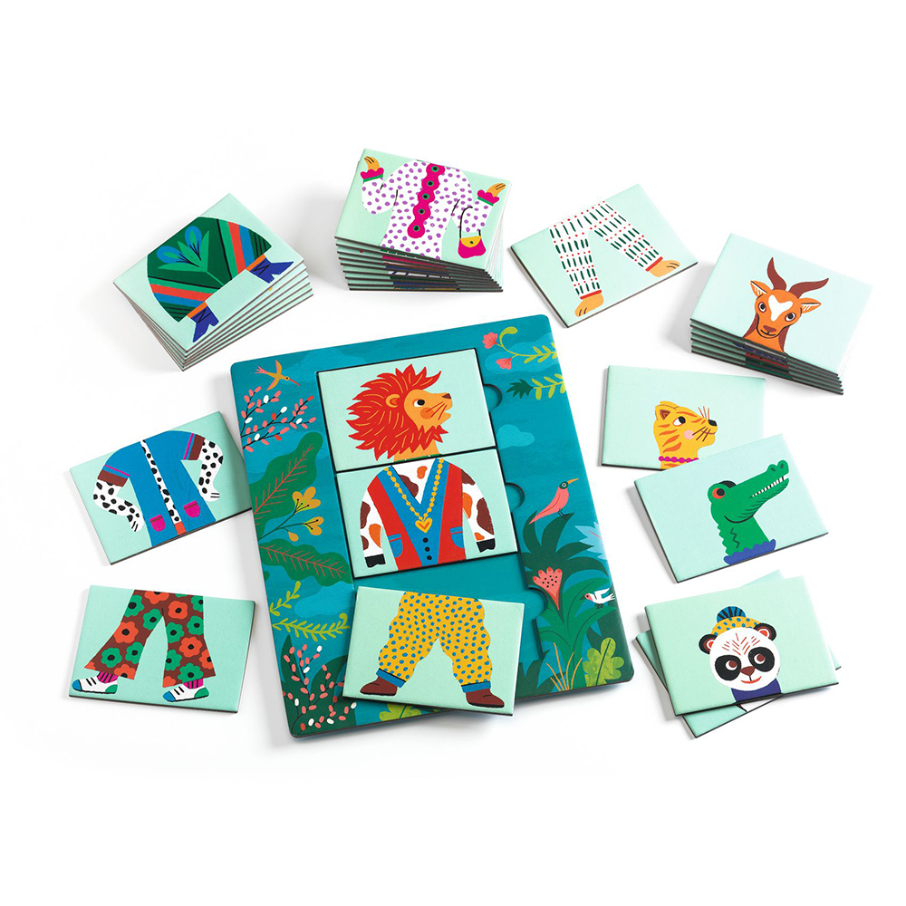 Skapa roliga och knasiga djur med Mix & Match Modanimo! Detta pedagogiska spel erbjuder barn en rolig och kreativ upplevelse där de kan blanda djurhuvuden, kroppar och ben för att föreställa sig roliga och unika varelser.