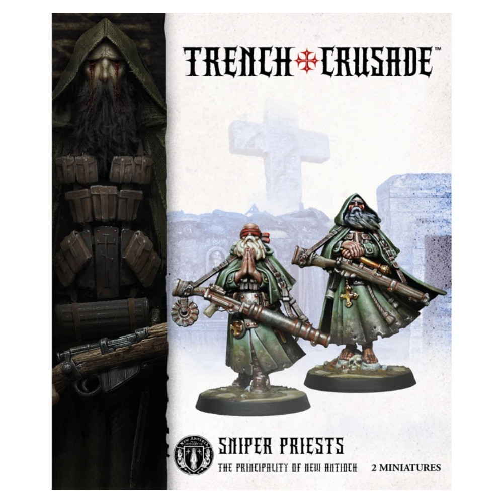 Trench Crusade: Sniper Priests för in en kylig och metodisk död på slagfältet. Genom ritualer har de fråntagit sig själva synen för att aldrig tveka, och varje skott de avlossar leds av en tro starkare än rädsla. Oavsett om det handlar om prickskytte på extremt avstånd eller förödande understödsvapen, träffar deras attacker med skrämmande precision.