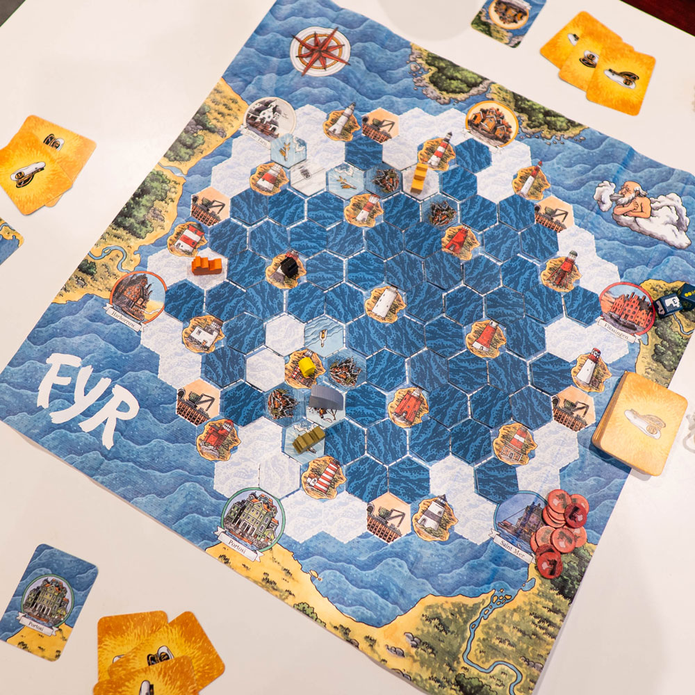Vi hade verkligen superkul med Fyr! Det enda vi skakade lite på huvudet åt var att spelplanen är gjord i kart-tyg… ett modigt val, om man säger så. Men charmigt? Absolut!