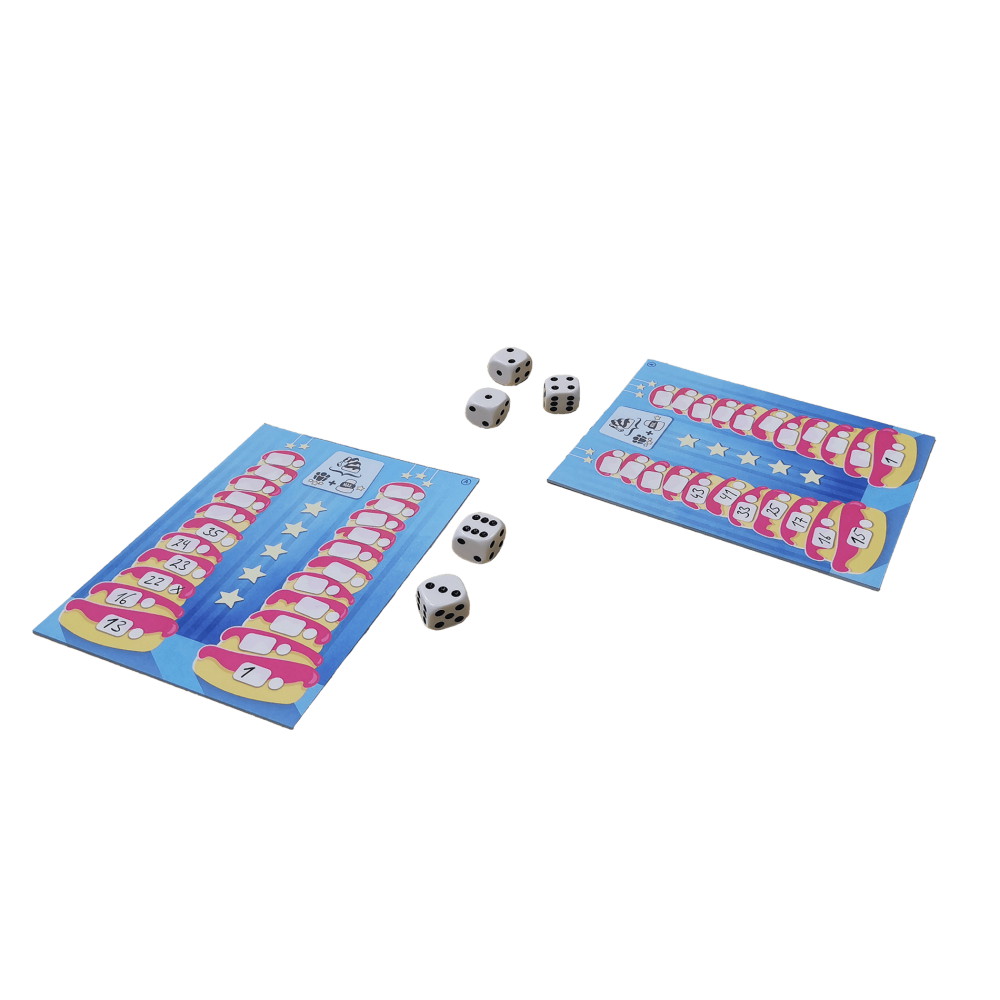 Välj två av fem tärningar från den allmänna displayen och använd dem för att bilda ett tvåsiffrigt tal. Till exempel kan du använda tärningar med siffrorna 2 och 5 för att bilda 25 eller 52. Så här försöker du klättra uppför din tårta så högt som möjligt. Nästa nummer måste alltid vara högre än det föregående.