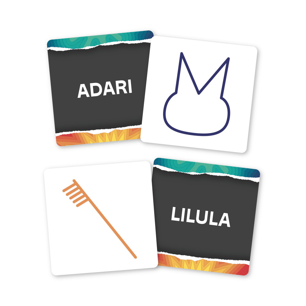 Korten i Bouba/Kiki visar ett nonsensord på ena sidan och en enkel illustration på den andra. I grundspelet står du inför en uppsättning av tre av dessa ord och en form, och måste bestämma vilket ord som passar bäst till formen. Poäng tjänas genom att välja samma mål som dina lagkamrater.