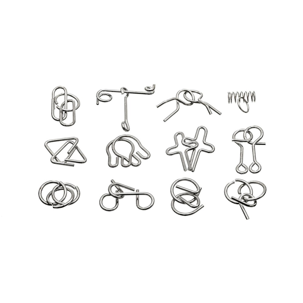 Set med 12 kluriga metallpussel som utmanar!