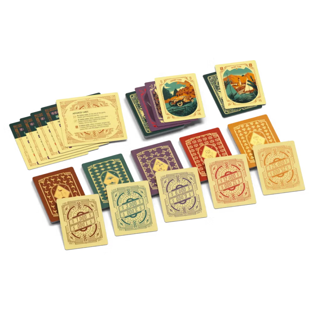 Denna utgåva lyfter den klassiska upplevelsen med nya kort designade av Reiner Knizia, inklusive innovativa auktioner och oväntade vändningar. Med stilrena illustrationer och exklusiva detaljer blir varje spelomgång en glänsande kamp om ära, rikedom – och överlevnad i societeten.