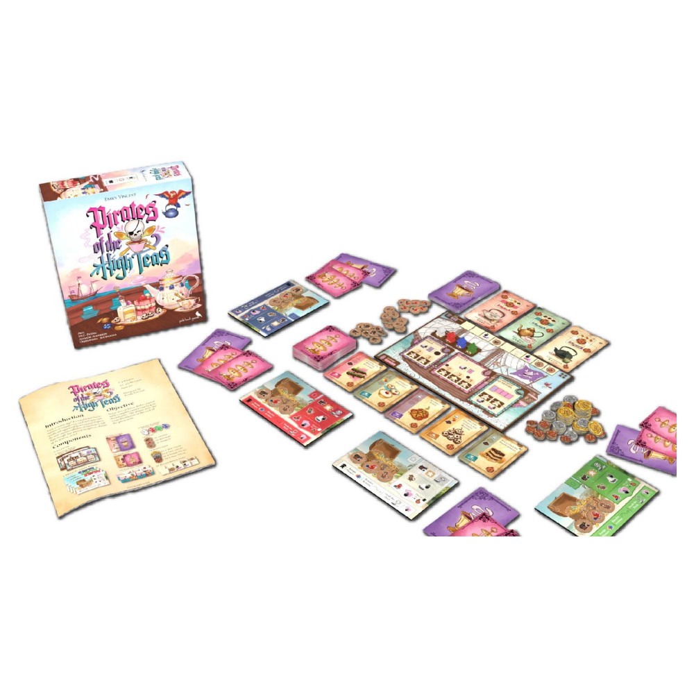 Samla rätter, matcha med te och imponera på kaptenen – men som pirat är inget heligt. Spräng utbudet med kanoner, låt din apa sno kort och smuggla poäng med din papegoja. Worker placement styr dina val, men kreativt kaos avgör vem som vinner.
