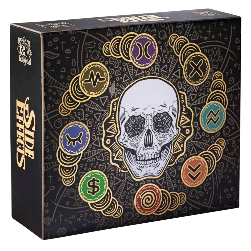 Förutom att det är grymt roligt att spela är Side Effects ett underbart konstverk i sig - den förgyllda lådan innehåller 89 vackra kort och ett instruktionshäfte.