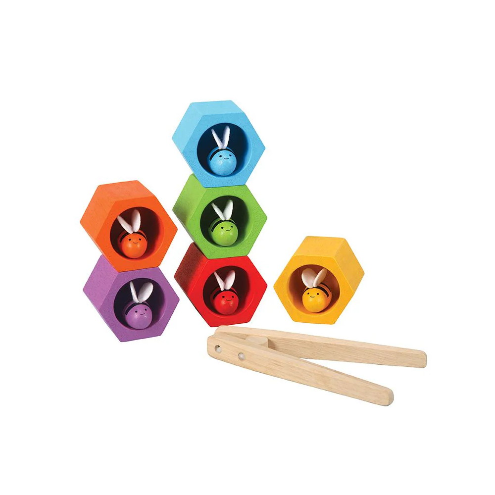 Träna motorik genom att placera bina i rätt cell med hjälp av pincetten.