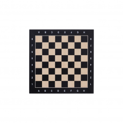 Schackbrädet har kantmarkering med nummer och siffror, för algebraisk notation och distansmatcher.