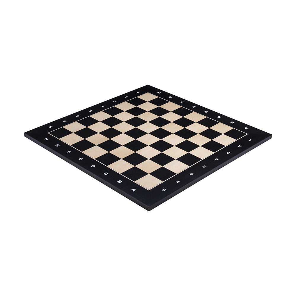 Schackbrädet har kantmarkering med nummer och siffror, för algebraisk notation och distansmatcher.