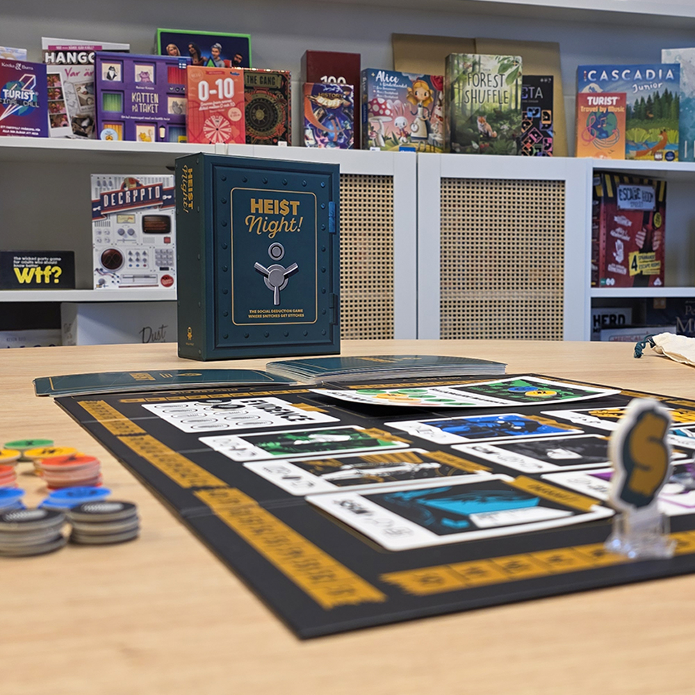 Kliv in i rollen som smarta – och lagom skurkaktiga – brottslingar i detta superroliga spel från Ninja Print! Men akta er… någon runt bordet kan vara en förrädare. I Heist Night planerar ni tillsammans djärva kupper för att betala av skulden till Bossen. Problemet? En av er kan i smyg jobba för polisen.