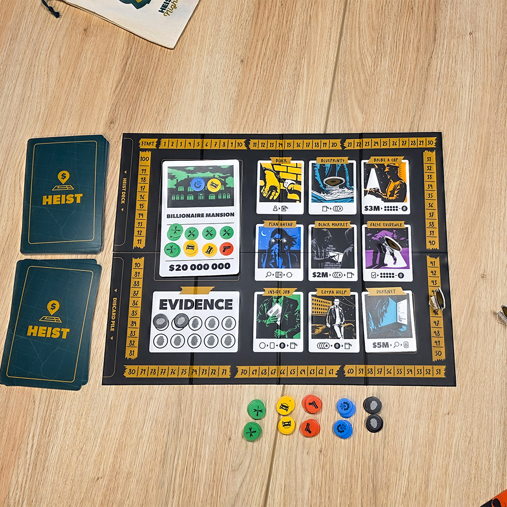 I varje runda planerar och genomför ni en stöt - ni diskuterar, röstar och försöker lista ut varandras motiv. Hur kommer det att gå? Kommer du att vara med och dela på bytet, avslöja förrädaren eller fälla hela gänget?