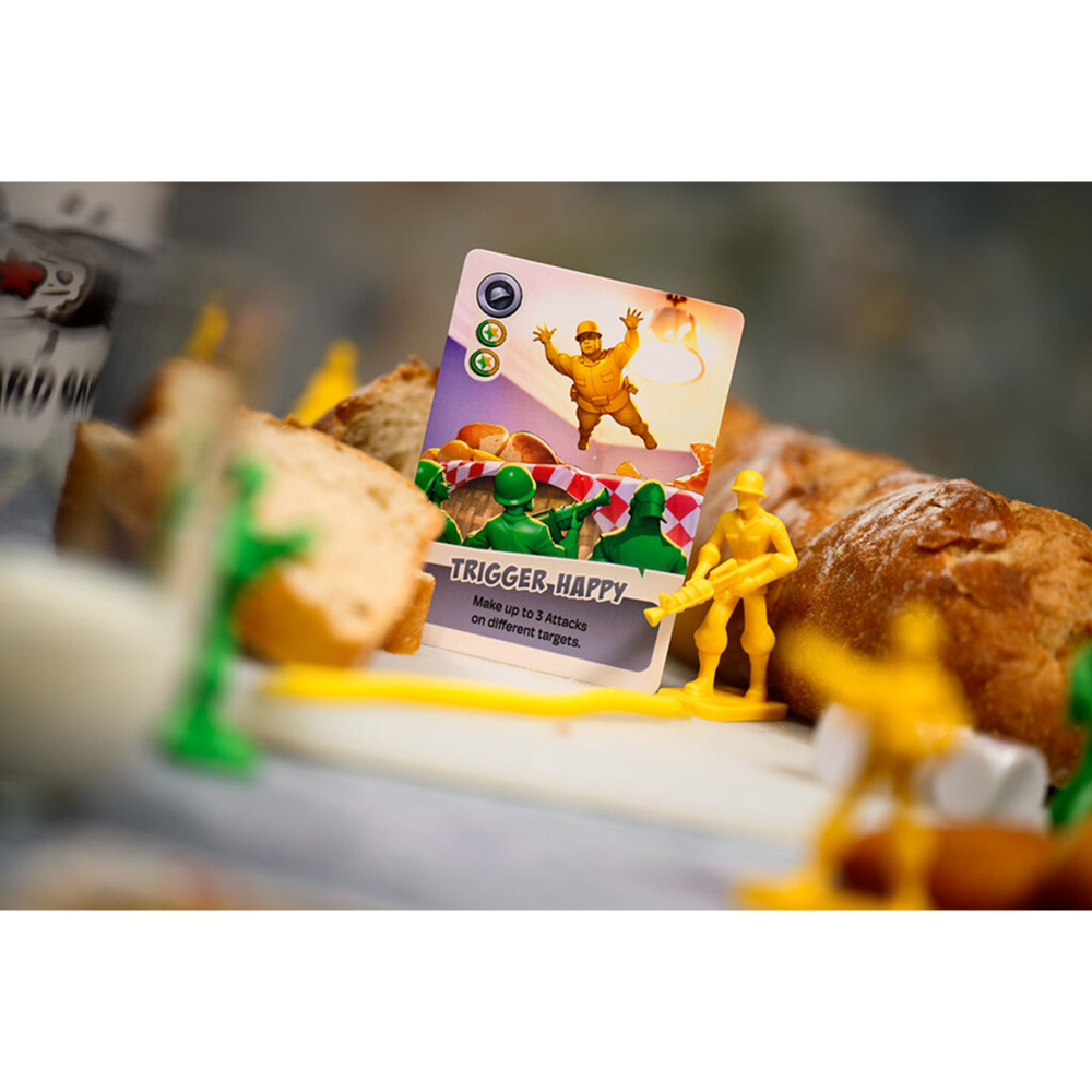 I Little Soldiers förvandlas det som normalt hör hemma på matbordet – tallrikar, ostlådor och servetter – till gömställen och strategiska positioner. Varje spelare styr en liten plastarmé som kämpar för kontroll och överlevnad mitt i kaoset.