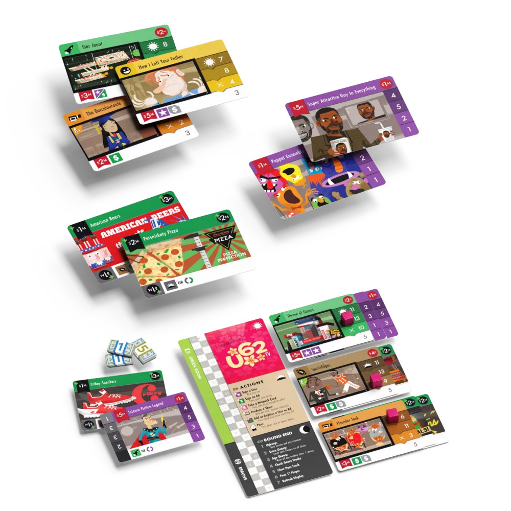 I The Networks: Primetime bygger spelarna upp sin tv-tablå genom att samla program, stjärnor och reklam. Stjärnor lockar fler tittare medan reklam ger pengar till nya satsningar. För att maximera framgången måste du matcha rätt stjärnor med rätt program och placera reklamen i rätt sändningstid.