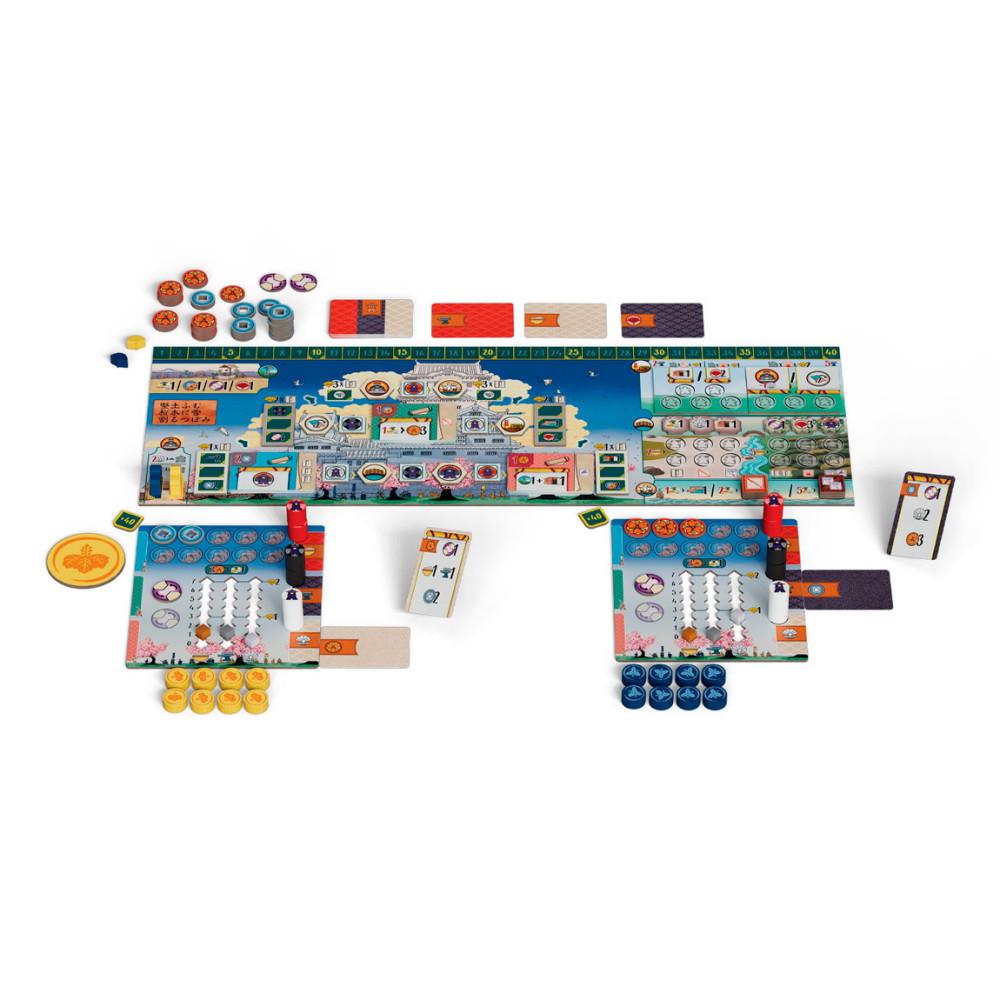 Två klaner tävlar om att utöva sitt inflytande i Vita Hägerns hov, hantera resurser och bygga lokomotiv. Använd lampmarkörer för att få resurser och aktivera handlingar. Bland de tillgängliga handlingarna kan du köpa och uppgradera inflytelsekort, placera klansigill på trädgårdar och övningsplatser, flytta din hovman mellan inflytelsekretsar eller handla med portugiserna. Dessa handlingar låter dig samla en serie ikoner - flaggor, katanas, kabutos och origamifigurer - som belönar dig med poäng, och den som slutar med flest poäng vinner.