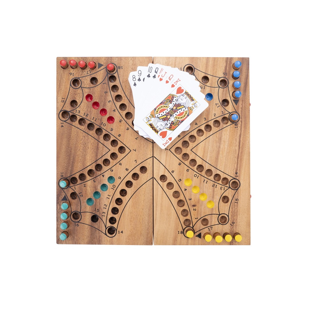 Spelbrädet är hopfällbart vilket gör det enkelt att förvara eller ta med sig när du reser. Innehåller en låsbar träspelbräde, 16 träbönder, en uppsättning kort och spelregler.