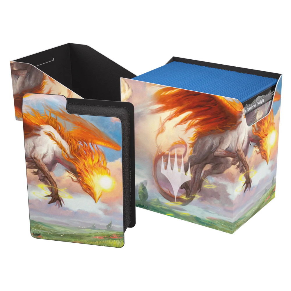 Den innovativa själv-låsande mekanismen ser till att korten hålls säkert på plats under transport. Dessutom är boxen helt täckt av färgstark, officiellt licensierad artwork från Lorwyn Eclipsed – en perfekt kombination av funktion och stil.