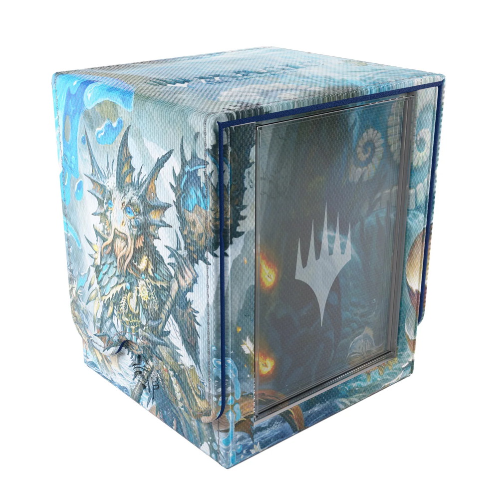 Den unika Slide Card Case låter dig visa din commander eller toppkort direkt – skyddad från UV-ljus och alltid synlig för snabb igenkänning. Samtidigt håller den robusta konstruktionen och magnetiska stängningen din lek säkert på plats, oavsett om du är på turnering eller hemma vid spelbordet.