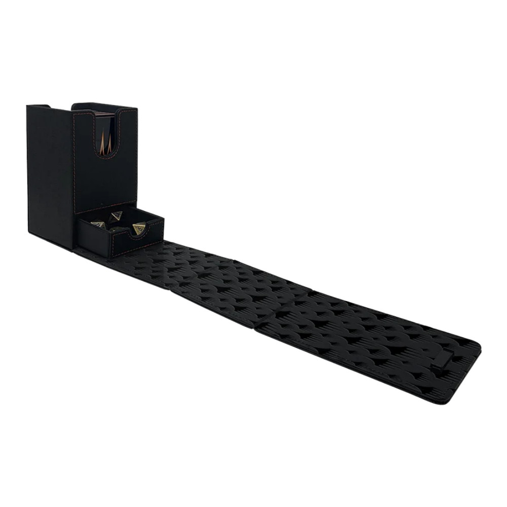 Magic: The Gathering – Deck Box Alcove Tower Mythic Edition erbjuder plats för din lek tillsammans med praktisk förvaring för tillbehör. Den robusta konstruktionen i läderliknande material, kombinerad med broderad Planeswalker-symbol, ger ett exklusivt intryck både vid spelbordet och i samlingen. Den magnetiska stängningen och låsmekanismen håller allt säkert på plats, medan den integrerade lådan ger snabb tillgång till tärningar och andra små tillbehör.