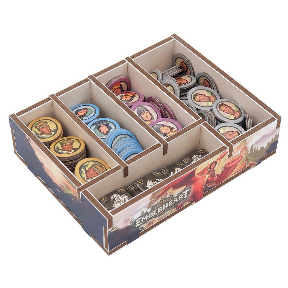 Insatsen är designad för ett spel med lådans yttermått på 29,5 x 29,5 x 5,3 cm.
