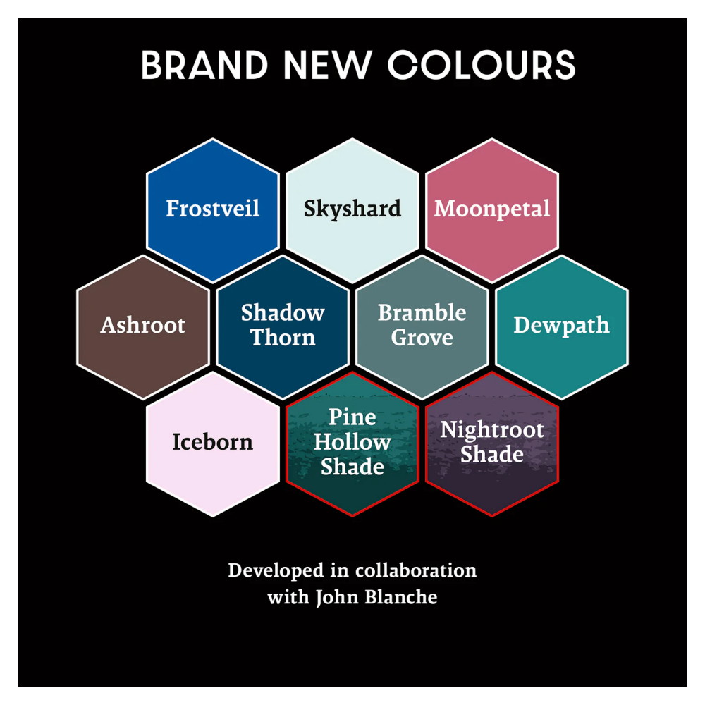 Masterclass Series John Blanche Volume 3 bjuder på en gripande palett och kylig kontrast. 10 helt nya färger skräddarsydda för kyliga miljöer, inklusive 8 Warpaints Fanatic-flaskor och 2 Washes, som använder den praktiska färgnamngivningskonventionen.