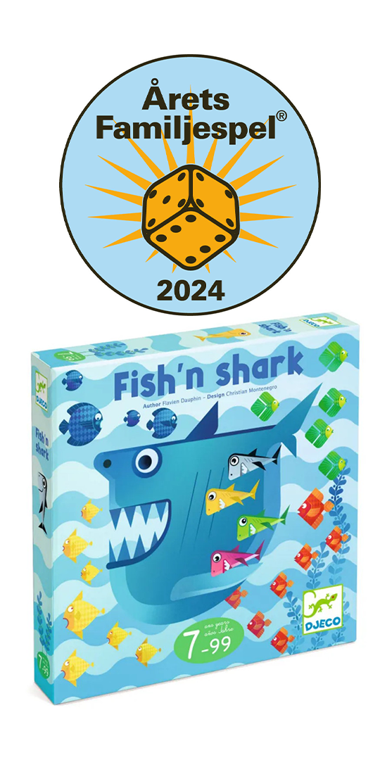 Lätt att haja, enkla spelregler men ändå många spännande strategiska turer, som faktiskt utvecklas vidare för varje ny spelrunda. Det handlar om att pappa haj tar med sina hajbarn på fisketur, men rätt som det är kan pappa lägga beslag på delar av fångsten, men kan också vara snäll och lämna tillbaka en del. Utstuderat och välgjort där det gäller för barnen/spelarna att fylla sina spelbrickor med fiskar, i själva verket små träkuber i olika färger. Vackert, mysigt och fartfyllt med stora spelvariationer.
