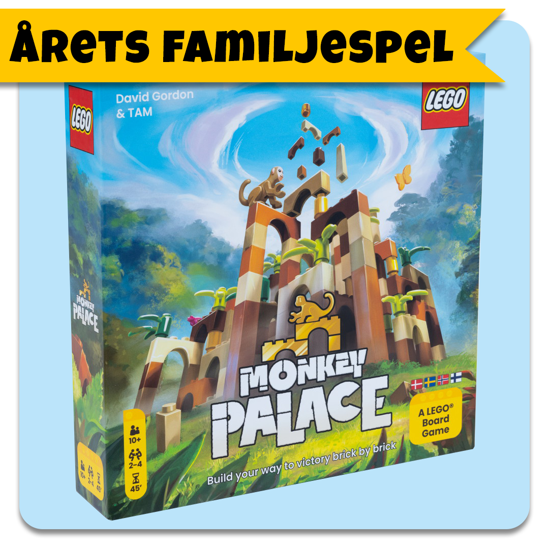 I LEGO® Monkey Palace hjälper spelarna apan att bygga upp djungelpalatset, samtidigt som de tävlar om att skapa de högsta och längsta trapporna. Taktik är viktigt, ju bättre man bygger, desto fler bitar och bananpoäng får man. Varje omgång är unik, vilket gör att man vill spela igen.
