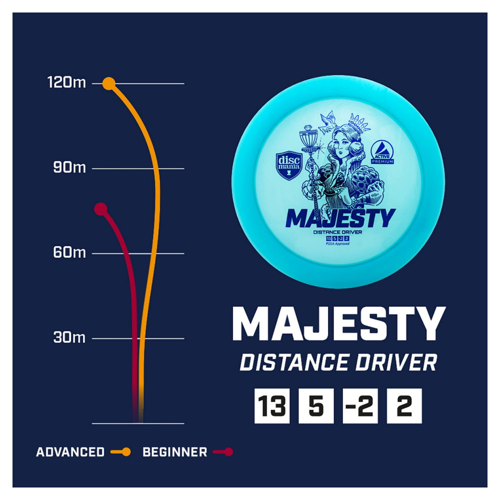 Spelare med mer kraft kommer att märka en lätt understabil turn i början av flykten, innan discen återgår till sin stabila bana och avslutar med en pålitlig fade. Detta gör Majesty idealisk för långa S-kurvor och kraftfulla distanskast.