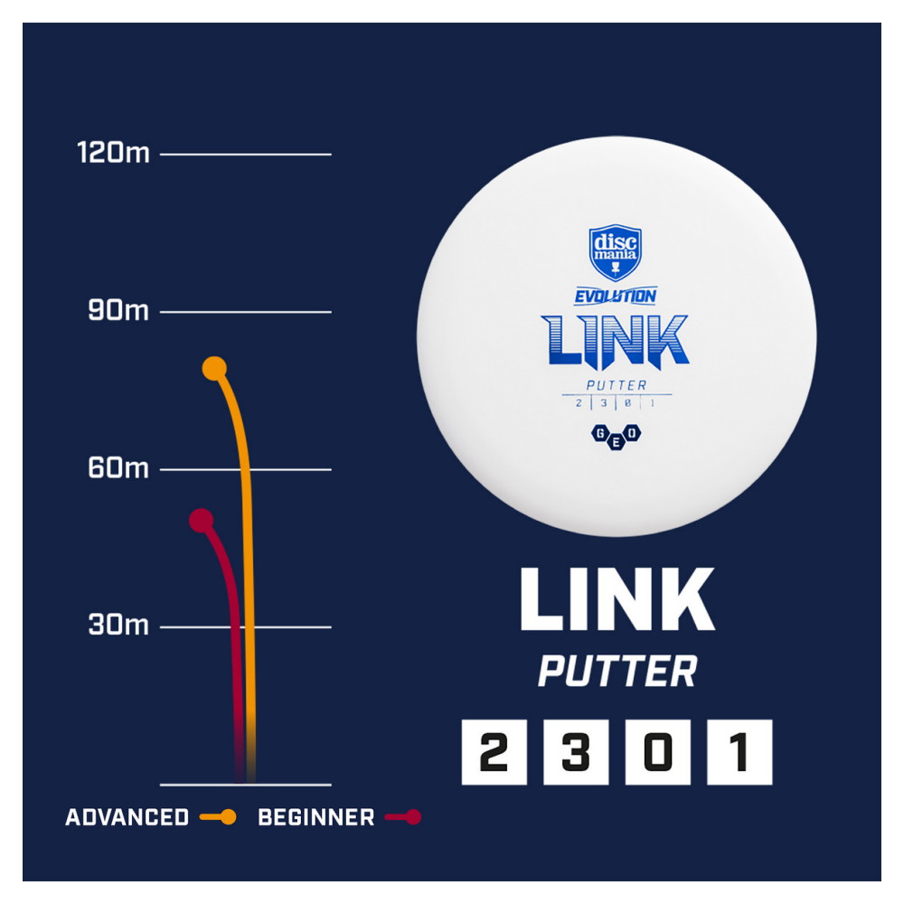 Den ergonomiska rimprofilen gör att Link ligger bekvämt i handen oavsett handstorlek. Det gör den till en mångsidig putter som fungerar lika bra för korta puttar som för längre putterkast från tee.