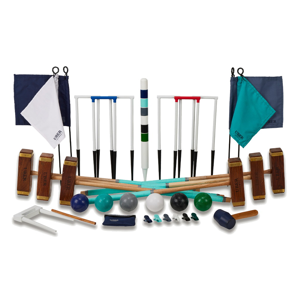 Uber Championship är kungen bland krocketset och erbjuder en nästintill kunglig elegans och lyster till ditt spel. Sex klubbor i rosewood med fyrkantiga klubbhuvuden, enligt brittisk modell, i två olika storlekar. Klubbhuvudena i rosewood är även förstärkt med mässingsbeslag.
